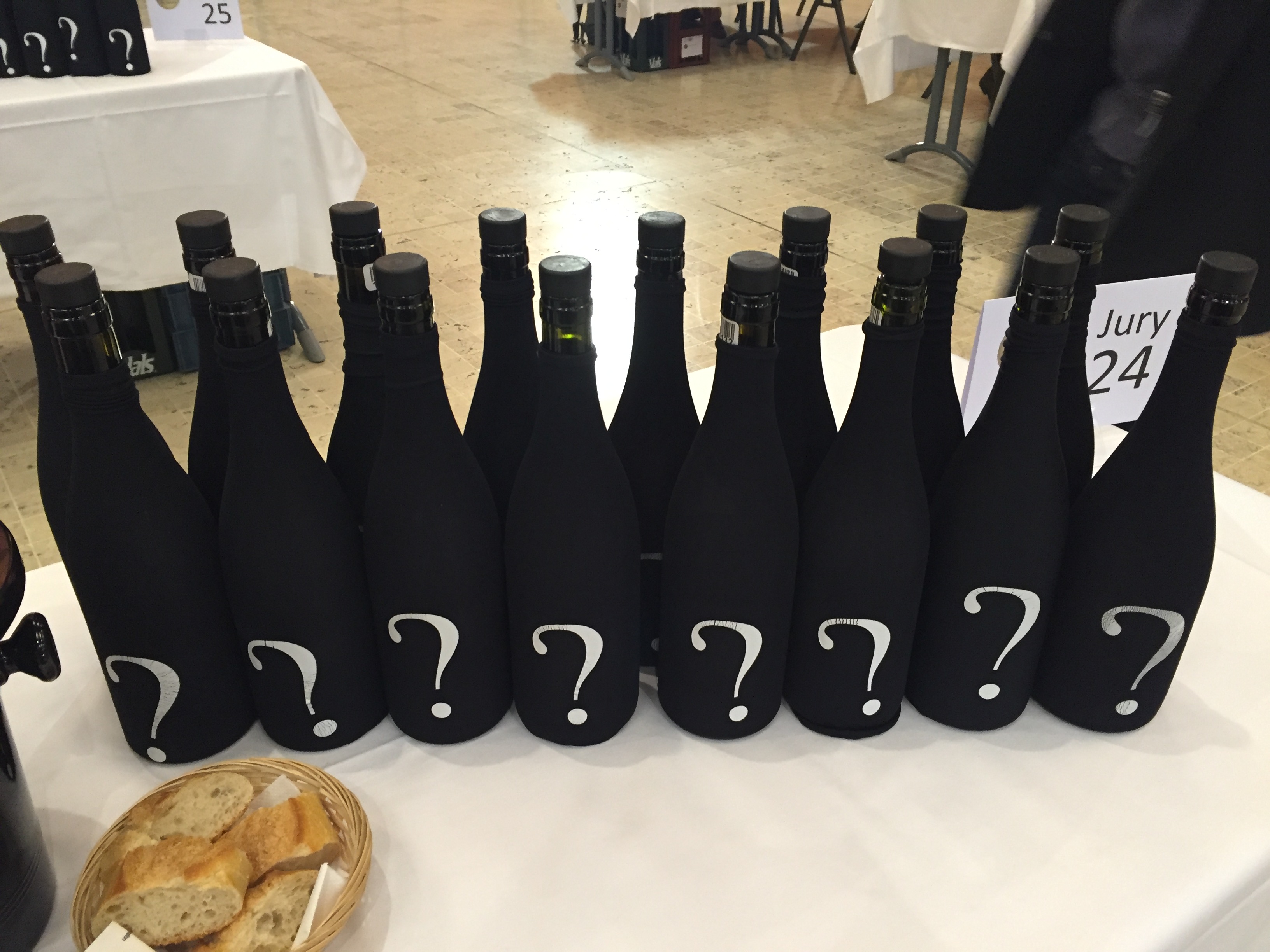 Les chaussettes (nom donné au cache sur les bouteilles) ont été enlevé après avoir rendu les notes au commissaire : il n'y a pas eu de triche !