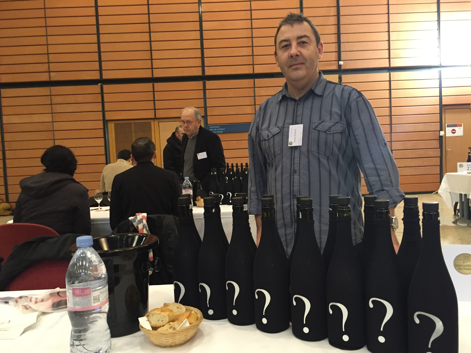 À notre table il y avait 16 vins à l'aveugle, nous devions en choisir 1 pour le présenter au grand jury mais malheureusement nous avons estimé que les vins n'étaient pas présentable pour la finale.